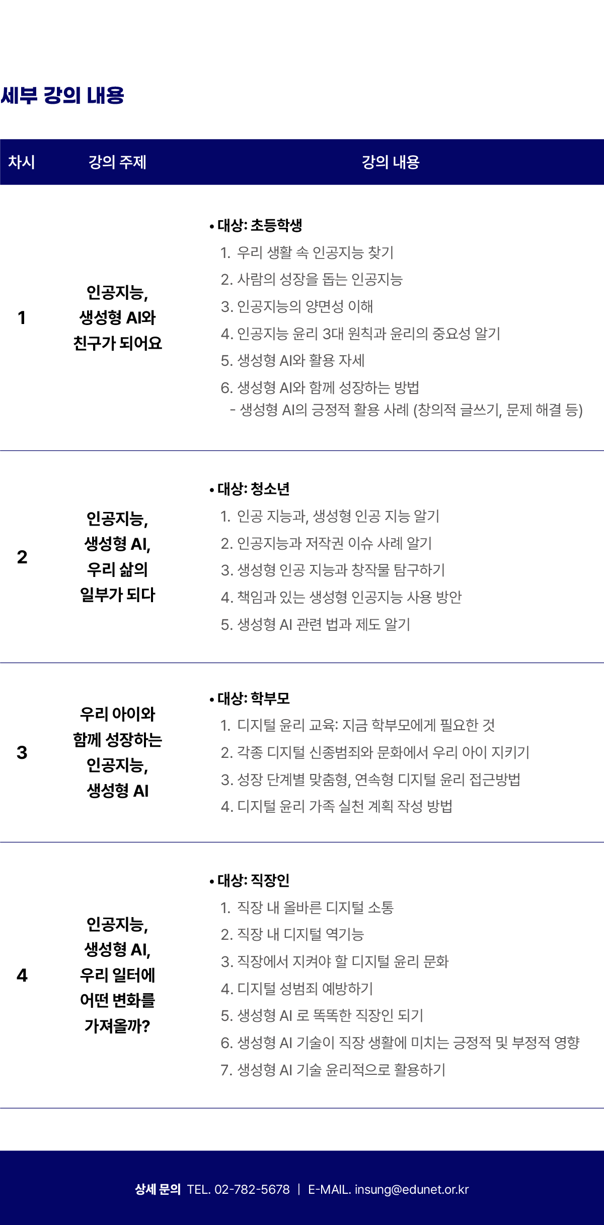 수강신청은 회원가입 후 로그인하셔서 교육과정 내 원하시는 강좌명을 클릭 후 강의 정보를 확인하시고 신청해주시면 됩니다.