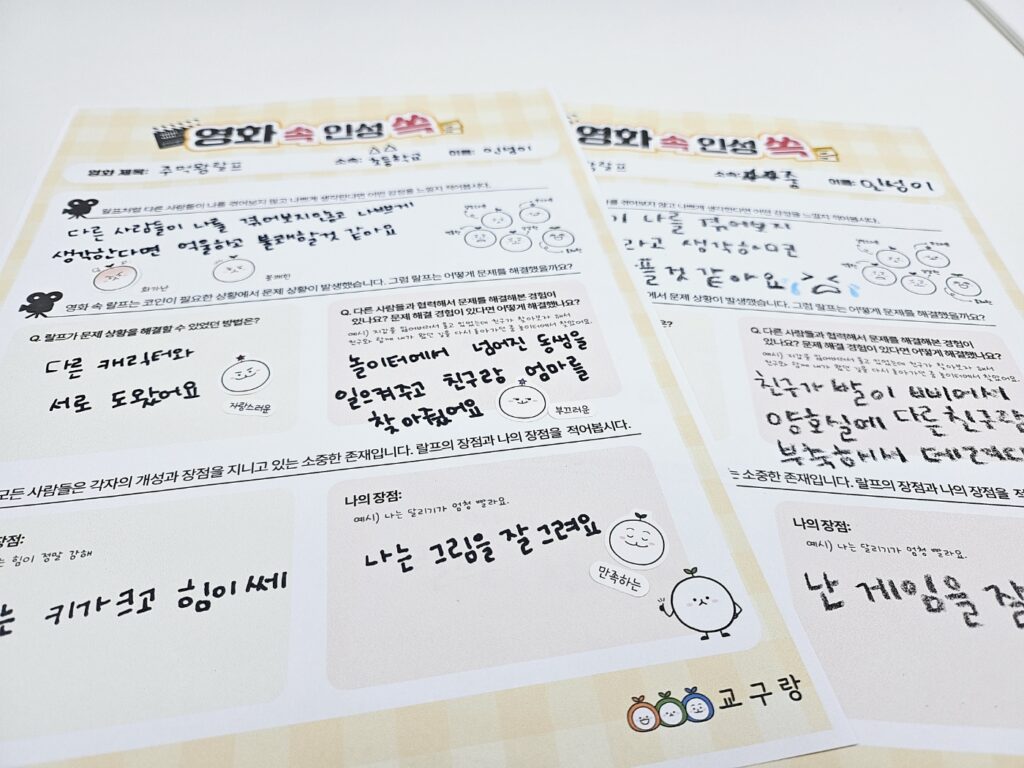 *아래 활동지 예시 사진은 스포일러가 될 수 있습니다. 스포일러를 피하고 싶은 분은 가장 밑으로 내려가시면 됩니다.
